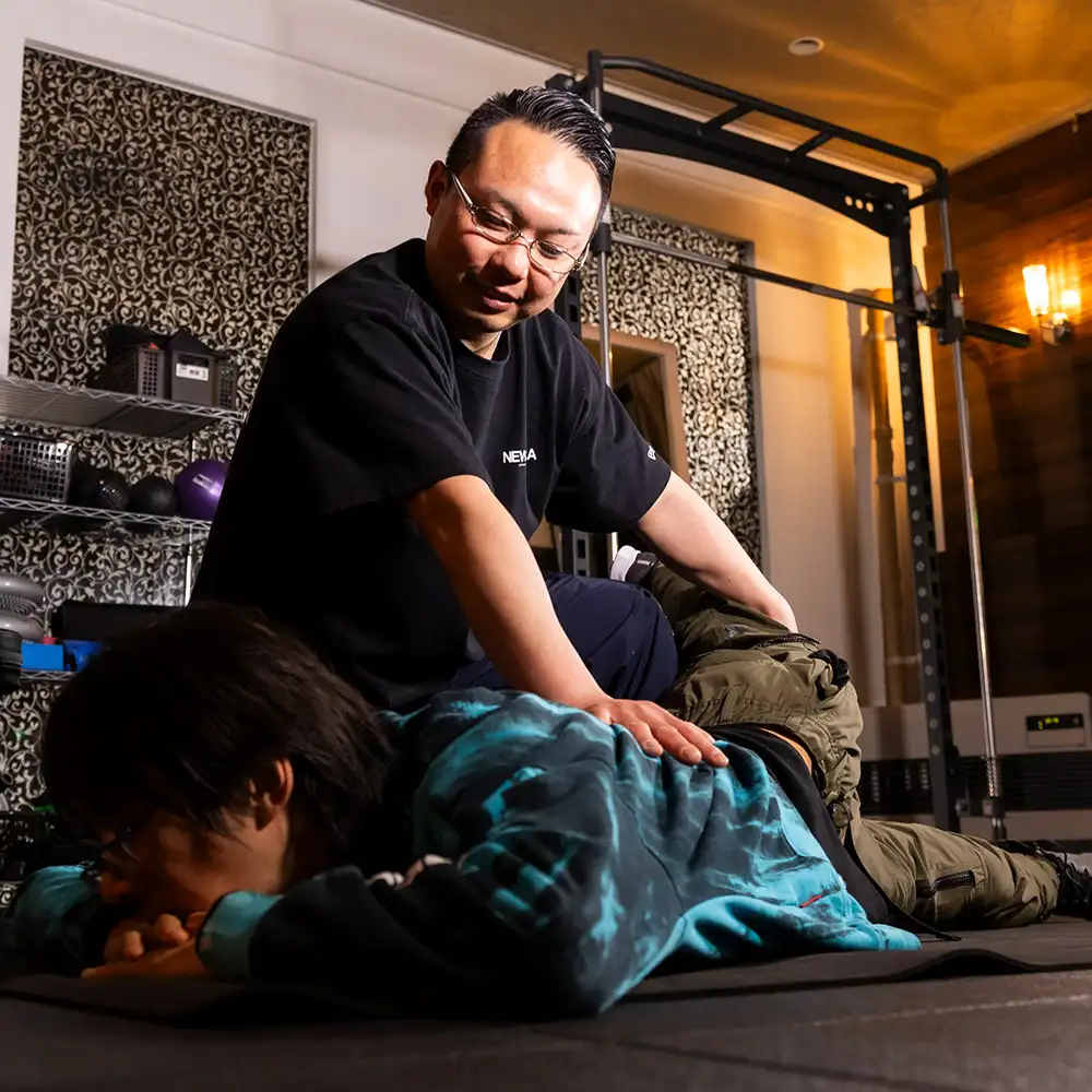 ダイエット、筋肉量増加、体力づくり、運動不足解消など、お客様の目的に合ったトレーニング指導、食事アドバイスを提供します。学生を対象とした指導も行っています。